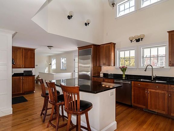 In town living at it's finest near Weston's charming town center. This meticulously renovated colonial blends the taste and beauty of a classic home with the fresh crisp lines of a today's transitional style. The kitchen is a wonderful centerpiece of this home with it's soaring two-story ceiling and perfect layout that will please even the serious cook with it's high-end appliances, granite countertops and wood cabinetry. The fireplaced family room is adjacent and has walls of windows that overlook the grounds. Both formal dining and living rooms have polished hardwoods, beautiful fireplaces and mouldings. The second floor has four bedrooms. three full baths and an open foyer that provides a comfortable lounging area for reading or watching TV. There are two great playrooms in the lower level plus a full bath! Central air, a two-car garage complete with garage Tek, and a stunning yard with handsome stonework complete this lovely home. Walk to town for your morning coffee!
