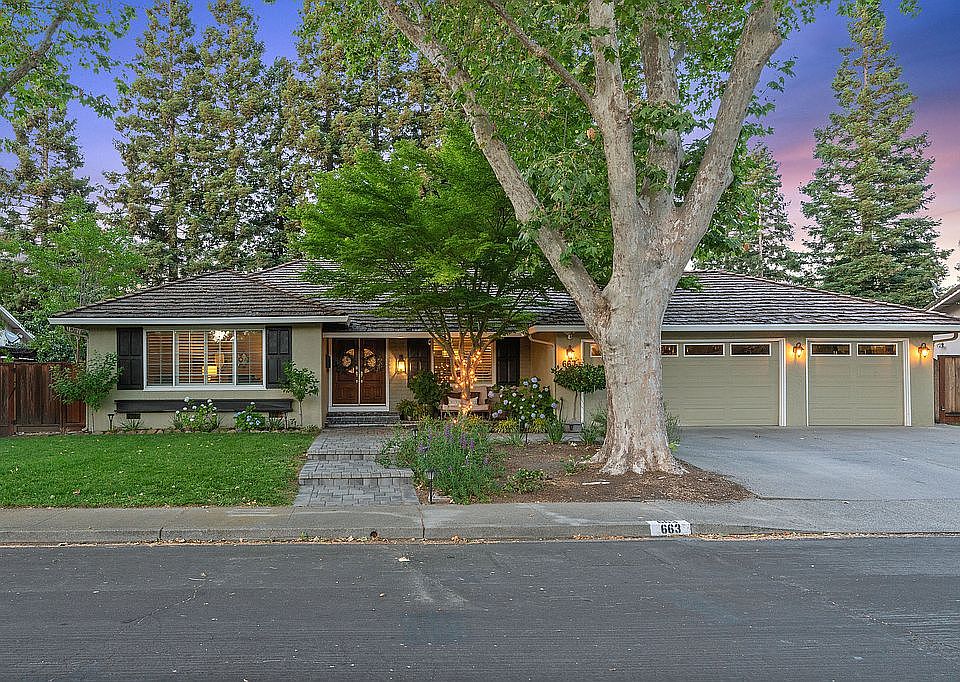 Situated on a quiet tree lined circle in the sought after Sycamore neighborhood is this remodeled single story home on 1/4 acre lot. An inviting front porch, lawn and lush landscaping complete the home's curb appeal. The spacious living room features hardwood floors that flow into the dining area accentuated by a built-in buffet bar. Designed by a well-known chef, the grand kitchen is appointed with marble counters, stainless steel appliances including a wine fridge and professional grade six burner gas range with double ovens, an oversized island with storage and seating, dual sinks, and a walk-in pantry. The gas fireplace anchors the family room with large windows framing the backyard. Down the hall, there are four bedrooms and two baths including the primary bedroom featuring three mirrored closets and access to a private deck. Gather in the quintessential backyard offering a paver patio, outdoor kitchen with BBQ, fridge and smoker, level lawn area and spa. There is also a laundry closet, updated half bathroom and three car garage. The Sycamore neighborhood boasts three club houses, community pools, tennis courts, playground, basketball court and greenbelt. Just minutes from downtown Danville, 680 FWY, Sycamore Park & Ride, access to walking and biking trails, and top-rated schools.