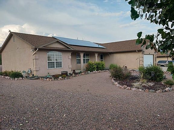 Feature loaded Canon City single level ranch style home located on quite cul-de-sac lot. Wonderful, easy maintenance Xeriscaped yard and mature tree & bushes. The open split bedroom floorplan begins with the large ceramic tiled entry which leads into the large open great room with vaulted ceilings and large bay window, custom designer kitchen offers quality upgraded cabinetry, large prep island/sitting, 2 large storage pantry's & beautiful hand scraped teak wood flooring. Great room also allows for the expanded dining room area with quality built-in storage hutch cabinetry. Master bedroom suite with large walk-in closet with built-in storage system composed of shelving & multi-layered racks, master bath with expanded walk-in shower and large linen storage closets. two separate bedrooms are quite roomy and also offer closet storage systems increasing the function of each closet. Large laundry room offers more home storage & room for freezers or?? Extra features of the home included full home central vac system with dustpan vents on all hard surfaces, pre-wired surround sound capability in great room, forced air furnace with central air and humidifier, camera security system and solar panel electric array which reduces your electricity bills to an average of only $9.00/month! Outside you will find a 14 x 16 covered patio, quality 16 x 20 shed/workshop with electric and second level storage and Attached 3 car garage!***