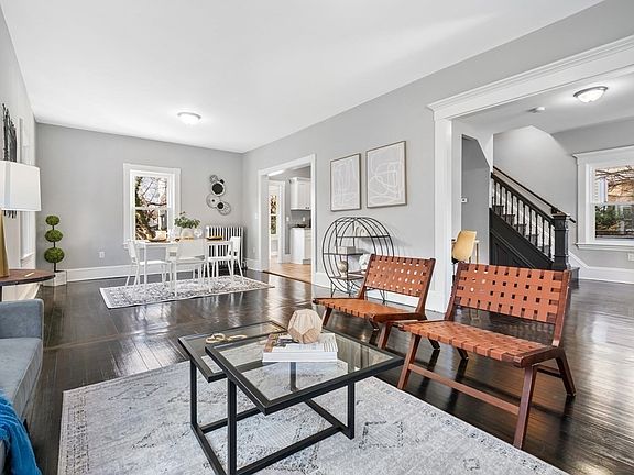 Welcome to sophisticated living in this exquisite 3 bedroom 1 1/2 bath home with impressive 9+ foot ceilings that elevate every room to new heights of grandeur. When you step inside you are greeted with bright sunshine and gorgeous refinished hardwood floors, providing a warm and inviting atmosphere throughout. The heart of this residence is a chef's dream, featuring a NEW white kitchen, granite and stainless steel appliances that seamlessly blend modern convenience with timeless elegance, which includes a NEW 1/2 bath convenient for family and friends while entertaining. The living room is bathed in natural light, thanks to a stunning bay window that adds a touch of charm. As you ascend upstairs, retreat to the generous sized bedrooms and NEWLY renovated main bathroom, where every detail has been carefully curated. Experience the perfect combination of style and functionality.