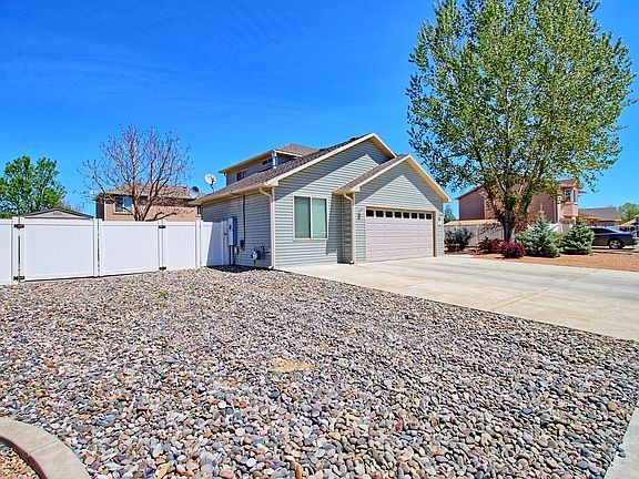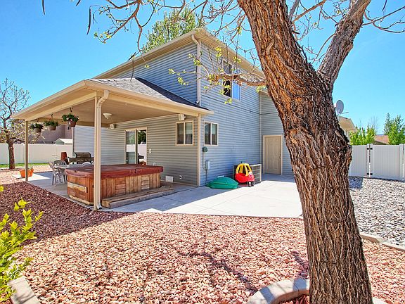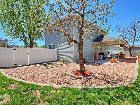 Welcome to Fruita! Impressive layout in this home with 3 bedrooms, 2.5 baths, central air and oversized, heated 2 car garage PLUS large 10x20 workshop area; could easily convert back to 3 car garage. Wonderfully designed kitchen with tile floors, hickory cabinets, pantry and Stainless appliances. Spacious bedrooms, walk-in closets, master suite with attached private bath. Surround sound system throughout home and to exterior hot tub area. Great outside features as well including a covered patio, storage shed with a roll up door, concrete pad for RV parking, vinyl fence, low maintenance landscaping, and vinyl siding. Fresh paint and seller has just installed brand new tile and brand new carpet throughout! This place has it all!