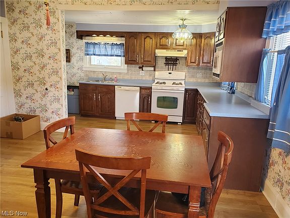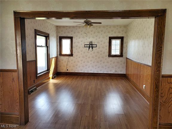Make this charming 3-bedroom home your own! Located on the corner of Pilling and E. Canal St., it is approximately 1/2 acre with a driveway that connects to an alley in the back of the property. The home has a spacious eat-in kitchen with appliances (not warranted) and a separate dining room that is connected to the living room with beautiful woodwork framing these rooms. There is a 1st floor master bedroom with newly remodeled bath from Bath Fitters. The upstairs has 2 bedrooms, a half bath and an office/computer room. Lots of storage. Home has been rewired, several replacement windows, metal roof, vinyl siding, fire pit, large deck off of the kitchen leading to the 24 x 32 garage, plus shed for extra storage. Replacement windows that open in the basement. This home is located minutes from I-77 and minutes from town and shopping. MWCD $6.00/year.