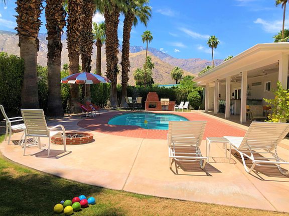 Offered for 30+ days only, not offered for full-time occupancy. This midcentury glamour home is tastefully and comfortably appointed. It is perfect for entertaining and relaxing. Enjoy this quintessential desert oasis. The resort like private backyard has breathtaking mountain views, newly surfaced sparkling pool, poolside wet bar, firepit, fireplace, covered dining, and gas BBQ. The interior has an open floorplan with lots of natural light, a sophisticated living room, elegant dining area, cozy den, and large modern kitchen, all with pool and garden access and stunning views of the San Jacinto mountains! There are three comfortable bedrooms and two bathrooms. The large master has backyard views/access, luxury spa like shower, bidet, double sinks, and a to die for walk-in closet. Kitchen has gourmet All-Clad cookware, Wusthof, Henckels knifes, Nespresso coffee maker, convection oven, and just about everything for a chef. Enjoy touches of luxury inside and out!