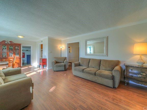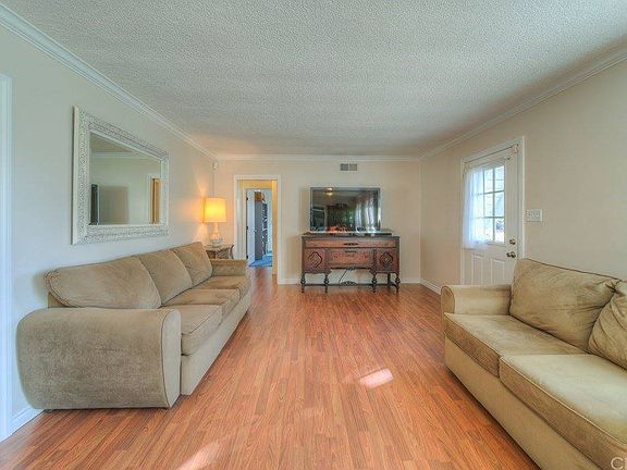 Cute single level home with a huge park-like yard! This home has pride of ownership, and is 100% turnkey! Situated on the corner-style lot, this home has a large beautiful front yard with mature mulberry tree, and an adorable front porch. Inside, there is a spacious great-room style living room, and an adjacent dining room with fireplace. There is laminate flooring (original hardwoods underneath), double pane windows, custom crown molding, and an upgraded gunite ceiling. The charming kitchen has checkerboard flooring, two large pantries, and plenty of cabinets. Oversized laundry room with a sink, and also a door leading to the back patio. There is a remodeled bathroom with large shower adjacent to the laundry room. There are two bedrooms and a hall bathroom with a tub/shower. The garage conversion is a game room/optional 3rd bedroom (which would add 399 sq ft more), but could easily be turned back into a garage! Pool table stays! Enjoy access to the backyard from the oversized sliding gate in the alley (RV and/or boat parking), and there is a detached 2 car carport (21'x20') as well! Enjoy the beautiful backyard with a 45' avocado tree, w/ hundreds of avocados per year, exotic plants, raised bed veggie garden, and two sheds (17'x10' and 12'x12' appx)! The covered patio is great for entertaining and even includes a bar! Other features: 220v hookup for spa, central HVAC, security cameras, motion sensor lighting, milgard windows, ceiling fans, and a beautiful mountain view! Call