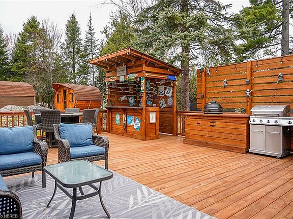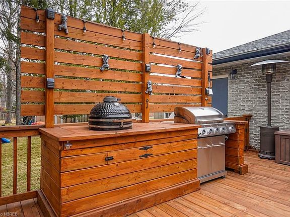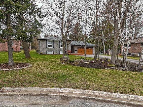 Gorgeous family home situated on a quiet cul-de-sac in Birchaven. This all brick home sits on a large pie shaped manicured lot with gorgeous gardens and rock outcropping. The large foyer of this split entry bungalow offers plenty of room and has a double closet. The main floor features a beautiful open concept kitchen with custom cabinets and a nice sized center island with additional storage drawers and a new countertop. The gleaming hardwood floors were installed over a solid subfloor preventing any squeaks or dips. The new deck complete with Tiki bar, BBQ and a smoker are perfect for entertaining. There is a new sauna situated on the granite in the rear yard, 2 bedrooms on the main floor including an over-sized primary with a cheater door to the updated 5 piece bath. The lower lever is finished with a large rec room with a gas fireplace and a Murphy bed for those extra guests. There is a fully renovated 3 piece bath as well as 2 good sized bedrooms. There is a large laundry and utility room that is also roughed in and plumbed for an additional bathroom. The house has had numerous upgrades including new flooring on the main floor, lower level bedrooms and in the rec room. The roof, furnace and central air were done in 2020. The attached double garage is insulated and heated, currently used as a workshop. The new deck completes the backyard and is perfect for entertaining.