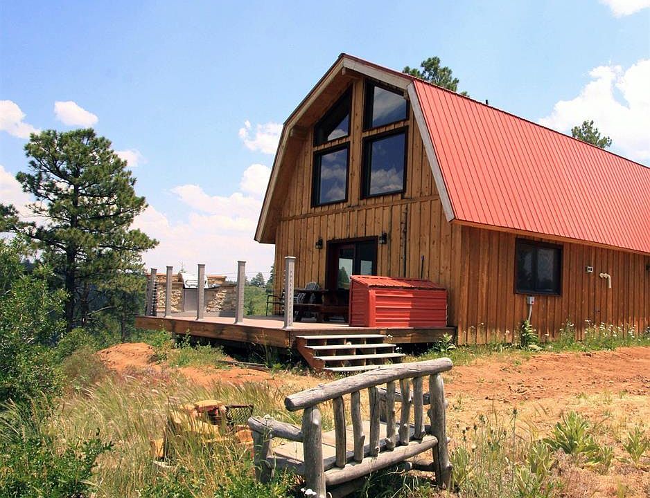 Looking for a TRUE Deal PRICE REDUCTION? SUPER AFFORDABLE AMAZING OFF-GRID LIVING & NO HOA! Looking for distinct living visions: some sleepy and relaxing, some packed with outdoor adventure and packaged at a very affordable price? Nostalgia can be a powerful blueprint. A vivid map that can influence anything from square footage and architectural style to materials and location. All of these is what pulled these sellers to build this cabin. Simple floor plan cabin has vaulted ceilings, and durable, energy-efficient construction together with outdoor views and greenery creating a positive effect on health, mood and attitude! This tract of mountain paradise is where your can can beat the heat of summer or enjoy winter sports play and experience amazing mountain exploration and views! Connect with nature. Experience a non-covenant rural setting where you can kick back and do more things you love, yet minutes from downtown Pagosa Springs! This well-built self-sufficient solar off-grid retreat on 2.1 acres has a 1,296-square-foot cabin with a footprint of two bedrooms, as well as gorgeous bathroom that showcases a claw soaking tub with shower, full kitchen, great room with cozy wood burning stove and HUGE deck overlooking massive mountain and valley views and dark star nights. Find inspiration in the original details that define this home. All Douglas fir wood in walls were once rafters of a 100-year old in Nebraska. The master bedroom affords plenty of room to relax with built-in cabinets providing ample room for clothing and storage. The guest bedroom is simple but cozy with vaulted wood ceiling. With soothing earth color combinations, this cabin provides the relaxing ambiance you deserve in after a day of work or play. Windows and glass doors frame mountain views wherever possible. Reclaimed wood floors create a dramatic framework for the individual spaces. A smartly designed kitchen features cabinetry, spacious counters and distressed finishes add to the ambiance! Some open shelving, and natural, lighter wood in the kitchen, harmonize with an airy, organic sensibility of the living room. Maple wood floors one the second level were reclaimed from a rural South Dakota one-room schoolhouse! This is a home created to suit active lifestyle and playing up the connection to the outdoors! Spacious wood deck provide additional outside living space. Large shed structure will keep those Colorado toys! Engineered septic system, solar system, buried water cistern (water delivery or self water haul available). Home was originally constructed in 2007 and owner had spent the past 2 years on final completion, including state of the art solar system. Furniture currently in home, conveys with sale. For more privacy, fence front and sides of home (back not needed as canyon provides privacy), as there is no HOA set the fencing of your desire. Inspired by natural surroundings, hikers and mountain bikers will find this setting in Pagosa fascinating. Metro district snow plows and grades road system for year round access. Sports enthusiasts will be happy to discover that Wolf Creek Ski area boasts the most amount of natural snow in the entire state and sports enthusiasts will be happy to discover that Wolf Creek Ski area boasts the most amount of natural snow in the entire state and minutes away from enjoying the best in winter sports. In town, shopping abounds with offers from a plethora of independent shops and business owners. After an energetic day of outdoor activities, there is no better way to unwind than to enjoy a nice cozy dinner at one of the locally owned restaurants or slip off to the world famous hot springs for an enduring soak. Folks come to Pagosa Springs to pursue every kind of outdoor sport, especially horsemanship, fly fishing, skiing, biking, and hunting. If you are searching for an affordable off-grid Get-A-Way, STOP! This property meets your desires! Call for your preview appointment today!
