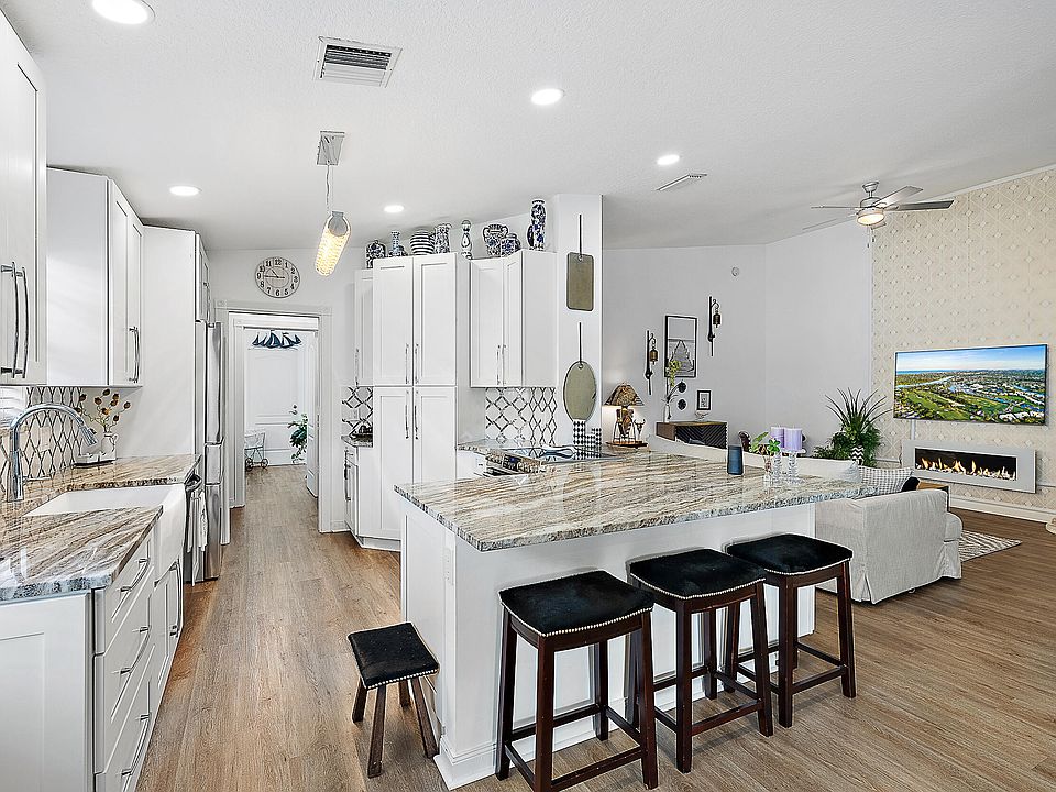 Located in the much sought after community of The Isles at Palm Beach Gardens this recently remodeled Lakefront extended Capri model offers pleasant views with East exposure and a private screen enclosed pool. Upgrades include plank flooring, lighting, new kitchen cabinets, high-end stainless appliances, and granite countertops. The master bath has a new shower, vanity with dual sinks, flooring, and lighting. Community amenities include lakefront Clubhouse with fitness center, heated pool, and lighted tennis and pickleball courts.