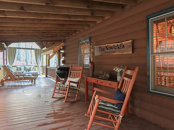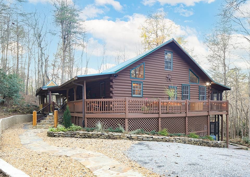 Discover the epitome of rustic charm in this expansive 3,000+ sq. ft. log cabin, perfectly situated on 2.63 tranquil acres with seasonal pond and stream and all paved roads to get to the cabin (NO Dirt Roads). Inside, the cabin features 3 spacious bedrooms, a loft, and 3 full baths, including a primary suite on the main level. The cabin has a durable metal roof, Leaf Guard Gutters and deeded access to the pristine Toccoa River just steps away, this property offers the ultimate escape. Located only 12 miles from downtown Blue Ridge, 3 miles from McCaysville the famous GA/TN line, and under 2 miles from Horseshoe Bend Park, enjoy easy access to fly fishing, tubing, a dog park, and playgrounds. Designed for both relaxation and entertainment, the home boasts refinished hardwood floors, extended decks, and covered front porch and patios enclosed by Porch Life 365. A custom stone fire pit next to the Spring fed seasonal pond and stream as well as the covered hot tub create inviting spaces for outdoor gatherings, while the asphalt driveway provides ample parking alongside a detached garage with extra storage. With NO HOA or rental restrictions, the potential here is endless. Perfect for short term rentals or vacation home and primary home! A fully finished terrace level offers additional living space with slate flooring and lots of extra storage cabinets that were added in laundry room and terrace level great room, and the 560 sq. ft. of enclosed decks provides year-round enjoyment. The updated kitchen includes new appliances, granite countertops, and an open design perfect for hosting. The 2 car detached garage also includes a large utility storage closet great for your fun toys! Soils are approved for a second home, adding to the property's investment appeal. Whether as a short-term rental, vacation getaway, or your forever home, this property delivers a blend of natural beauty, comfort, and convenience. Don't miss this exceptional opportunity to own a slice of paradise