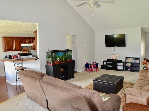 Partial brick 3 bedroom, 2 bathroom home. Attached 2 car garage. Cathedral ceilings in living room and master bedroom. Hardwood in kitchen, dining and utility. Master bathroom has double vanity, jacuzzi tub and stand up shower. Kitchen appliances remain. Roof is 4 years old. Central unit is 3 years old. Dishwasher is 1 year old.