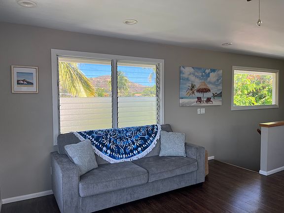1BR/1BA fully furnished (negotiable) apartment. Full kitchen with full-size fridge, range and dishwasher. Situated on the second floor, this quaint apartment is light, bright and breezy with great views and outdoor balcony. Split A/C in bedroom and living room to ensure total comfort on those few hot days. Stackable W/D in unit. Separate entrance and ample street parking for privacy and convenience. Perfect location to bike/walk to beach (1mi), and downtown Kailua restaurants/shopping (0.5mi). Available July 1 for month-to-month lease. References required with application. Military friendly. $2700/month includes all utilities and WiFi. Please note: No Smoking, No pets allowed, no exceptions. Water, sewer, trash, electric included. Designated off street parking space. No pets. No exceptions.