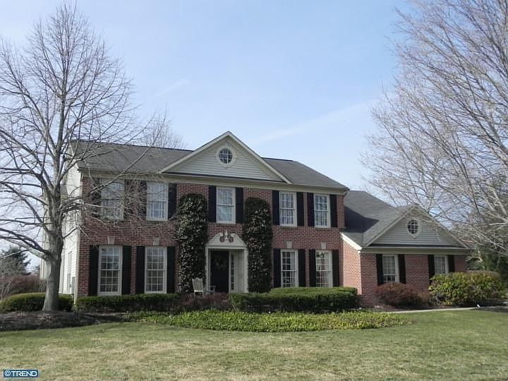 This expansive brick front colonial home is located on a half acre in desirable Yardley Estates. With over 3300 sq. ft. Of living space the home features an open center hall first floor plan with 2 story great room, private study with French doors and custom built ins, huge oak kitchen with breakfast area, formal living and dining rooms, and laundry ... all with hardwood floors! The kitchen and great room access a 600 sq ft deck with hot tub and arbor, backing to open space for privacy. The upper level features a large master suite with full bath (tub and shower) and walk in closet, connected by a second story balcony bridge to 3 large bedrooms, hall bath and Jack and Jill bath! The full basement is fully finished with large recreation room, private bedroom, full bath, and separate exercise room. Bedroom and full bath in basement provide for a guest, Au Pair, or In Law Suite. This home has been beautifully maintained and shows very well!