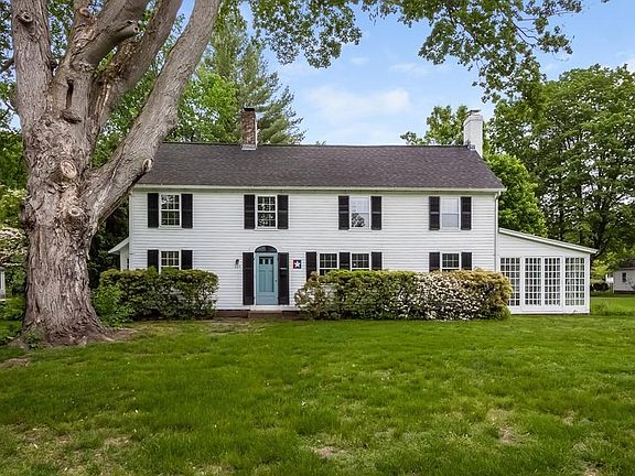 Thoughtful and tasteful renovations of historic "Israel Gates House" blend antique charm with modern amenities. Set back far from the street on pastoral 1.58 acres, sunny home has great flow for entertaining. Large living room with fplace leads to 3-season sunroom. Dining room has Rumford-style fplace, built-ins, and bay window. Upscale kitchen features soapstone counters and sink, large island, wood-clad & stainless appliances, custom cabinetry (including antique chestnut hutch) & French doors to brick patios. Family room has built-in bookcases and closet. First floor has a lav, laundry/mudroom. Front and back staircases to second floor with 5 bedrooms and 2.5 baths. Master suite with ample closets & bath with double vanity, linen closet, stall shower, and separate whirlpool tub. Spacious landing now serves as office. Wide plank wood floors. Walk up attic for storage. Detached 3-bay barn/garage has second floor. Hot tub to remain. Unique, desirable property. Shown by Appt.