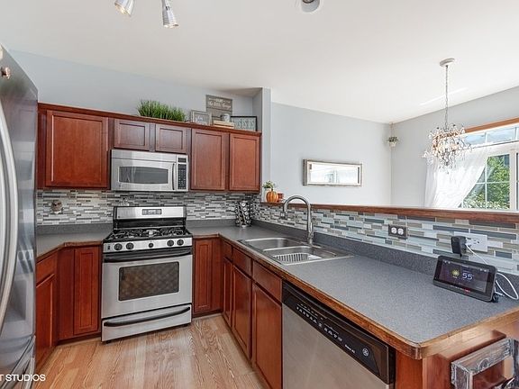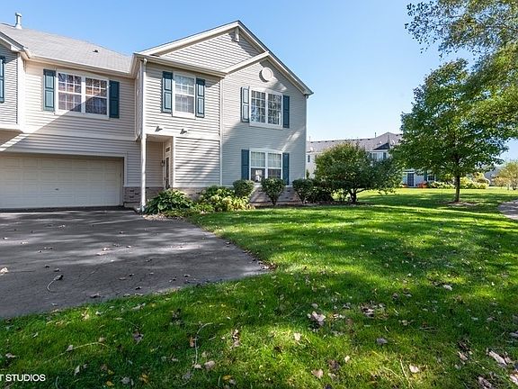 Do you love nature and some privacy? You need to see this spacious 2 bedroom end unit townhouse in the popular Lakemoor Farms subdivision. This sun filled unit has the open concept that today's buyers are searching for. The dining area and living room are completely open to the kitchen. The kitchen features beautiful cabinetry, stainless steel appliances, built in microwave, glass and marble back splash and plenty of storage. The spacious master bedroom has its own sitting area as well as a walk in closet The second bedroom has a walk in closet as well! Laminate flooring throughout the entire home. 1.1 baths, 2 car garage. Convenient 2nd floor laundry area. This unit is in the perfect location for nature lovers with a private wooded area just outside the front door! Walk to park. It will be love at first sight when you not only drive up and see the nature, but when you walk in the door.