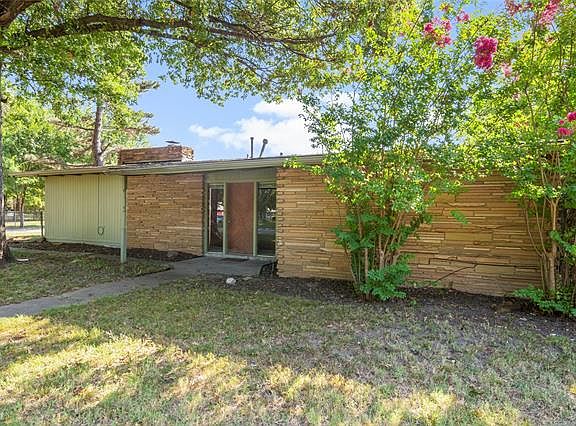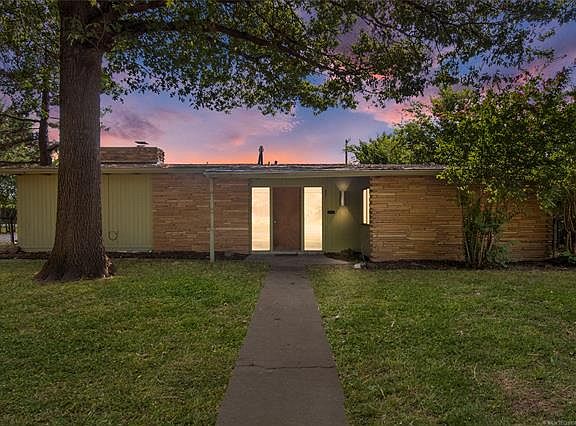 Unique mid century modern home by Tulsa Country Club and Downtown. Large lot with mature trees. Fantastic vaulted ceilings, 2 beds plus office that could be a 3rd bedroom. Very cool retro kitchen and bathroom. Tons of great windows and natural light!!! New roof 2021. SOLD AS-IS!