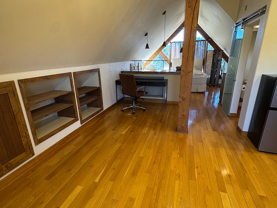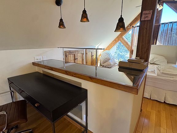 Private patioVaulted ceilingsEfficient kitchenetteBig windowsSleeping nook