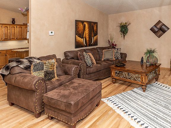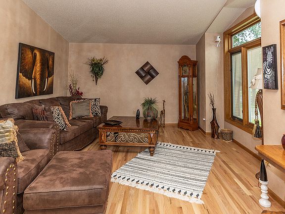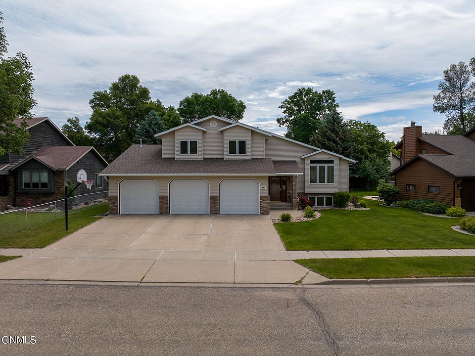 This Multi-level home with great curb appeal is located in a desirable SW neighborhood near Solheim Elementary and Riverwood Golf Course. The main floor features newer hardwood floors in the living room, kitchen, dining, stairs and lower family room. The kitchen has custom oak cabinets, newer granite counters, tile backsplash, newer sink and faucet, light fixtures, under cabinet lighting and newer stainless appliances (refrigerator just purchased). There is a spacious island with counter seating. The dining area has Pella Patio doors with encased blinds and retractable screen door installed in 2021 leading to the 14'x16' newly stained deck with bench seating. The spacious home offers 4 Bedrooms, including an updated primary ensuite with vanity with updated dual sinks granite counter and faucets, tile backsplash. There is also a jetted tub and separate shower. There are 2 additional bedrooms on the upper level plus a full updated bath with granite counter and fixtures and a skylight. Just a few steps down from the kitchen area is a family room with gas fireplace and newer 3 section Pella patio door with encased blinds leading to the fenced backyard and 11'x32' patio. A half bath and laundry is conveniently located off the garage entry door. There is an additional rec room/family room area plus another bedroom and full bath. The lowest level offers an additional 644 unfinished square feet great for storage or would make a great game room or a 5th bedroom with an egress window added. Updates to the home in the last few years include: Pella windows with encased blinds for easy maintenance, newer Pella patio door with retractable screen door, a security system, Bose surround sound, attic fan, Bryant air conditioner (2022) and Carrier furnace and humidifier with 3 zone heating and cooling. The home also had new 8 ft high insulated garage doors (2021), gutter guards, Reznor garage heater, sink and faucet in garage, compressor air system in garage and attic storage with retractable ladder all done in the last few years. The spacious 4 stall tandem garage offers 1012 square feet! The beautifully landscaped yard has underground sprinklers and the backyard features a black wrought iron fence.