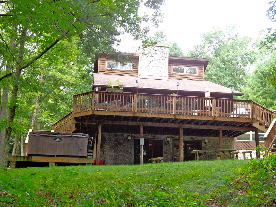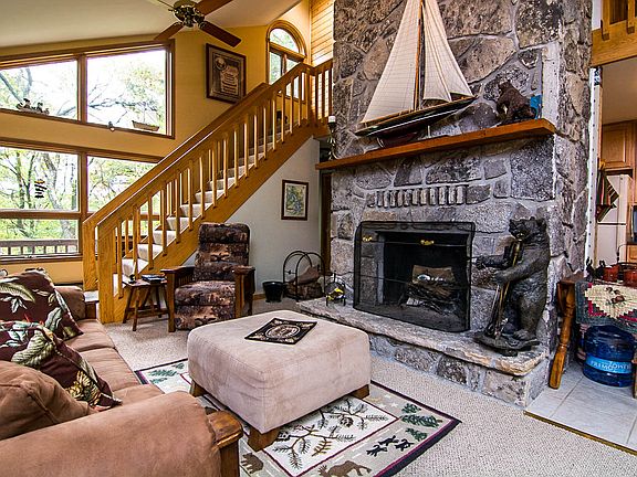 Secluded Lakefront! This inviting 4 BR 3 Bath retreat is extremely private, yet extremely accessible. Located on a cul-de-sac, the wooded lot is the perfect hideaway. The mostly renovated floorpan offers two living areas with stone fireplaces. Main level master & separate family room are great spaces. Large deck w/hot tub & hybrid game/spill over sleeping area perfect for any size group.