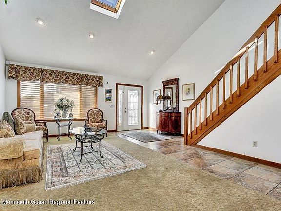 Pride of ownership shows with this move in ready Meticulously maintained home. An expanded bright and airy contemporary home features: An inviting two story foyer entrance is warm, welcoming and the perfect entrance to all this home has to offer. First floor large living room w skylights flows seamlessly into a formal dining room. A large eat in kitchen overlooks a amazing family room with stone gas fireplace. Large Den bonus room, a home office, laundry room, powder room. Second floor bedrooms are all generous size. Main full bath, Master suite with master bath. Enjoy privacy in your large fenced in paradise of a backyard w inviting built in pool and outdoor bar. Perfect for entertaining. Located on a quiet cul-de-sac street in a most desirable area of Brick. Don't miss this home