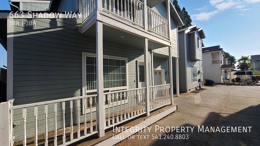 Very nice two story home with 3 bed and 2.5 baths! Spacioius living room features a gas fireplace and the kitchen has a brand new gas oven! Frequently Asked Questions: STATUS: Available Sept 19 PET RESTRICTIONS: Cats only, $25 monthly pet fee per pet, $500 additional deposit required. SMOKING: No smoking, no vaping, no marijuana INCOME REQUIREMENT: Gross 3 times monthly rent CREDIT REQUIREMENT: At least 600. MOVE-IN COSTS: First Month Pro-rated, Security Deposit $3150 DEPOSIT TO HOLD: $500 upon approval, holds up to 7 days. APPLICATION INSTRUCTIONS (HOW TO APPLY): Apply online. All complete applications are processed as they are received. First approved applicant to submit $500 deposit gets unit.If applying with a Pet or Assistance Animal, complete profile at http integrity.HOUSING ASSISTANCE: Income must meet 3x the amount of tenant portion, plus utilities. More Information: Property Description Details AREA INFORMATION: Shadow Way is off of Freeman Rd in Central Point FLOORING: LVP/Carpet GARAGE/PARKING : 2 car tandum garage plus driveway parking KITCHEN APPLIANCES INCLUDED: Fridge, oven/stove, dishwasher LAUNDRY APPLIANCES INCLUDED: Washer and Dryer PROPERTY TYPE: Single Family Dwelling UTILITIES INCLUDED: Sewer, Trash. YEAR BUILT: 2003 YARD: Back yard deck. Application, Lease Terms, and Fees *ADDITIONAL FEES NOT INCLUDED IN RENT: APPLICATION FEE: $50 PET FEE: $35/mo PET SCREENING FEE: $20 first pet, $15 each pet thereafter. RENTER'S INSURANCE: Required unless exempt by ORS 90.222 APPLICATION TURNAROUND TIME: 2-3 business days LEASE DURATION: 12 months HOA Instructions HOA CCnRs Apply *All information is deemed reliable but not guaranteed and is subject to change.*