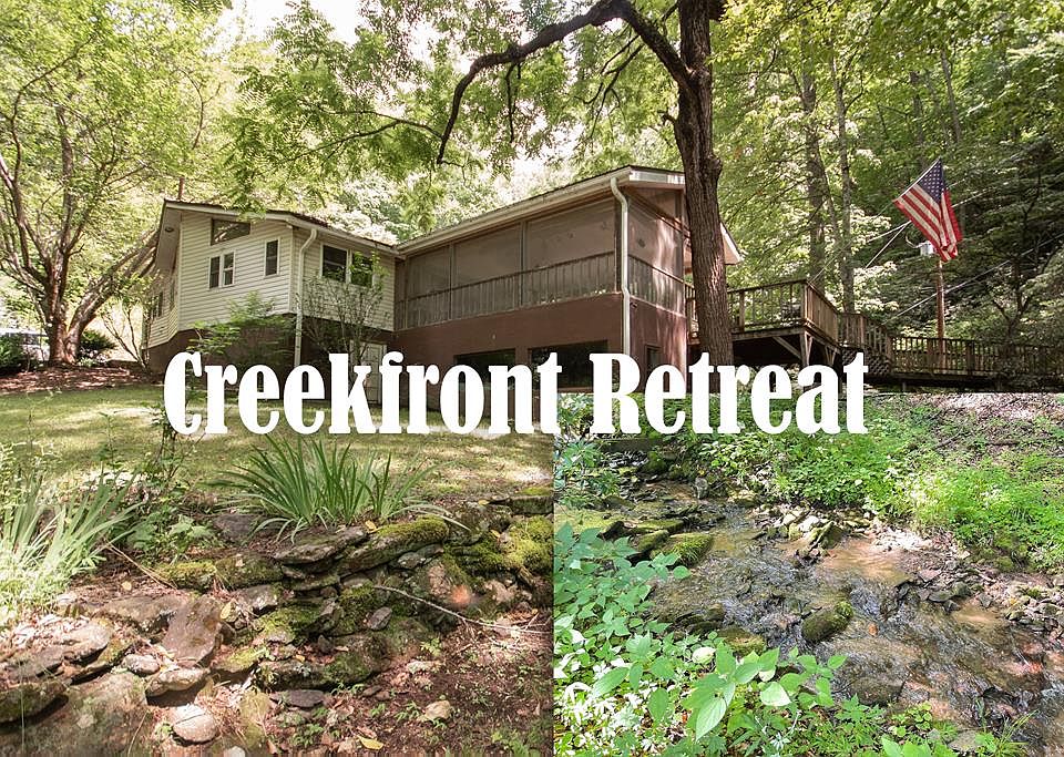 Incredible creek frontage in Cowee Valley! This cottage is located in a fairytale setting with over 700 FEET OF CREEK as your border. Listen to the sounds of Snow Hill waterfall from your property & view it from your land in the winter! The charming farmhouse is just waiting for your touches to bring it back to its prime. The living room boasts original hardwood floors, cozy gas fireplace & a wood ceiling contributing to a cabin vibe. The kitchen is fully-equipped & open to the living/dining area. Sliding doors out to a massive deck providing huge additional entertaining space overlooking the creek. A hallway leads to 2 bedrooms & a full bath. The other side of the living room features an additional bedroom/office, plus a multifunctional large mudroom or bonus space with a 1/2 bath & loft cubby the kids would love. You'll spend 3 seasons outside on the deck spaces or working in the wonderful garden space w/shed. RVs allowed! Very minor restrictions; road maintenance group in place to protect your access on the gentle gravel road. Located right in the heart of the gem-mining capitol - the sellers have found garnets & rubies in the creek! Community pond access. Get away to Snow Hill!
