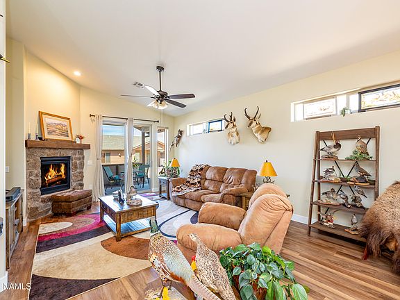 Beautiful home located in the highly sought after Highland Meadows neighborhood. Located near the 9th hole of Elephant Rocks Golf Course, this home is minutes from Cataract Lake and National Forest hiking trails. Inside you will find vaulted ceilings, a Malapai Stone fireplace, and a kitchen built to entertain. From the beautiful dark wood cabinets, quartz countertops, stainless appliances, and a farmers sink you will love every minute. Both bedrooms are complete with an en-suite bathroom and great closet space. The front and back of the home are finished with pavers, with room to entertain or relax. Enjoy cool nights and beautiful days just 30 minutes from downtown Flagstaff.