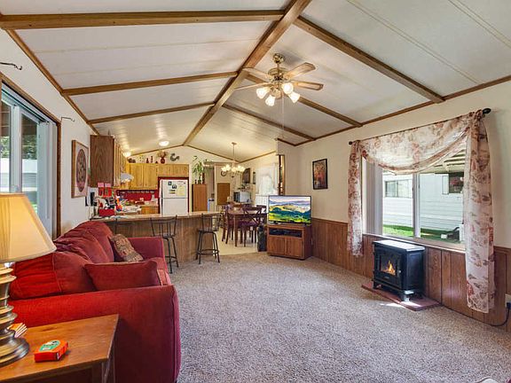 Located in the 55+ Community of Tall Pines Mobile Park, this spacious single wide manufactured home is very clean, private and ready for a new owner. All appliances included as well as washer and dryer. Nicely landscaped with a garden shed. A single carport and covered porch for enjoying the warm summer evenings.