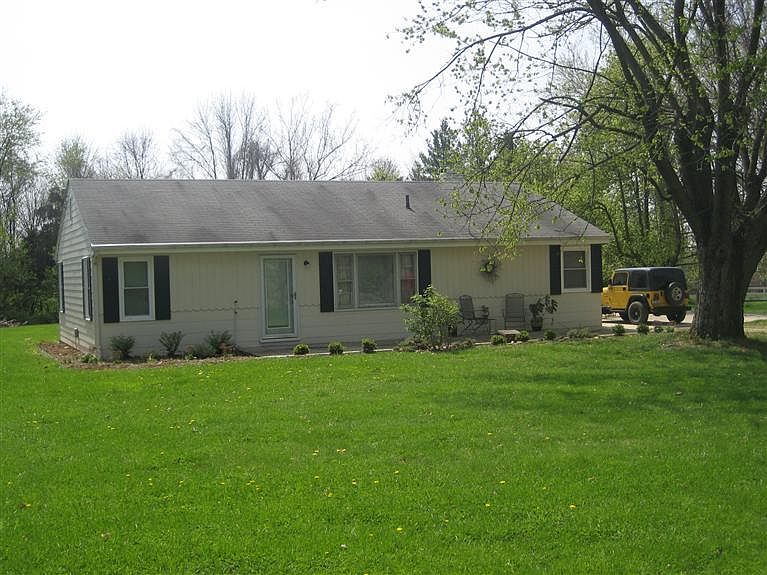 Beautiful country setting in town. Most convenient location. Walk to YMCA. 3 bedroom ranch with 1 updated bath. Big country kitchen! Huge living room, large patio, basement and attached garage. Over an acre lot with huge trees. Lovely lawn. Near by pass 48 south and I-71. Good value. Shows nicely.