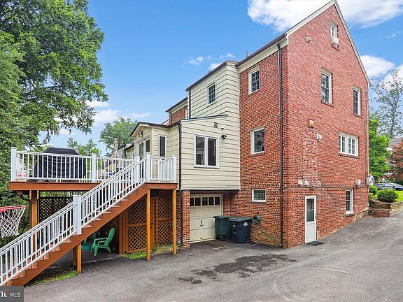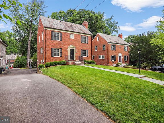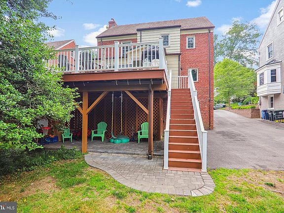 Open House Saturday (2-4pm) & Sunday (1-4pm). All brick colonial in lovely Barnaby Woods with easy access to Rock Creek Park. Hardwood floors throughout the main and upper levels. Renovated kitchen w new dishwasher, wine fridge, bright sunroom with french doors to large deck. Formal living room with wood-burning fireplace and built-in shelving. Formal dining room and half bathroom complete the main level. 2nd level with primary bedroom with ensuite bathroom, dual closets. 2nd and 3rd bedrooms, hall full bath and linen closet + fixed stairs from the hall lead to the finished attic space stairs to finished attic/4th bedroom. Fully finished lower level currently used as a home gym, but has potential as a suite with walk-out side entrance, full bathroom and laundry room with additional cabinetry, sink and fridge. Replacement windows throughout + new A/C system. Shared driveway that leads to a 1-car garage (side entrance). Partially covered patio area and large backyard.