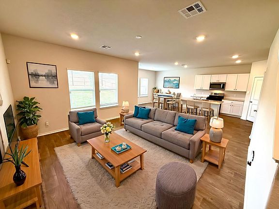 Welcome to 6630 Apfel, a two-story home located in San Antonio just minutes from Lackland AFB. This property offers four bedrooms and two and a half bathrooms, with a layout designed for everyday function and easy living. The open kitchen features stainless steel appliances, including a refrigerator, stove/oven, built-in microwave, and dishwasher. An island adds additional prep space and serves as a central gathering point. Central air and heat help keep the interior comfortable, and a water softener system is already in place. The primary suite includes a walk-in closet and a spacious bathroom, while washer and dryer connections offer added convenience. Step outside to a fenced backyard with a covered back porch, and a flower bed that adds a touch of charm. The covered front porch provides another place to relax outdoors. A two-car garage allows for secure parking and extra storage. The home is part of a community that offers access to a park and pool, with nearby shopping and dining options just a short drive away. Don't miss the opportunity to make this beautiful home your new rental! Thank you!