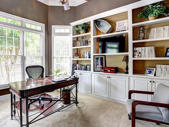 - Interior: 2-Story Foyer, Double Vnty Other, Entrance Foyer, Trey Ceilings, Wall/Wall Carpet, Bookcases