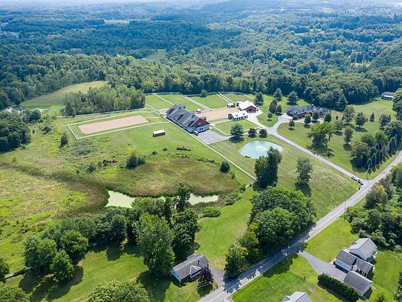 Beautifully Manicured Property in the heart of Guilderland is your view as you drive up the winding driveway overlooking 30 plus acres, pond and outbuildings (2nd floor apartment) for your horses or your many cars and toys. Park in the heated and well-kept 3 car attached garage or pull up front to brick paved walkway into the grand entryway of this custom designed and carefully planned out craftsman style home. Walk into a magnificent living room, gourmet kitchen with 2 islands, walk in pantry and wet bar with fully lined copper sink and countertops. Entertain year round with full bar area on the top floor with entertaining space and half bath. Enjoy cool Spring/Summer nights on the stone patio with a large stone fireplace or enjoy a roaring fire inside on those Fall NY nights. A Must See!