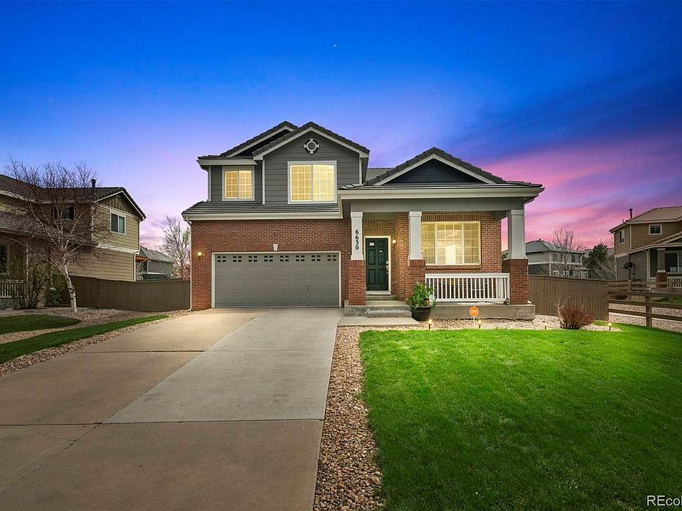 Welcome home to highly sought-after Castlewood Ranch of Castle Rock! This wonderful home on a half-cul-de-sac has amazing views of the mountains on the upper level. Walk in to find a completely re-modeled space. High quality laminate plank on the entire main level has replaced all the carpet. A lofted great area as you walk in greets you to an open, airy, bright and sunlit feel. Kitchen with all newer appliances and granite counters. The main area has a wonderful space for your home office, dining room or formal living room. Head upstairs to find new carpet throughout, a Primary bedroom with a custom headboard and barn door. In the primary bathroom you will find a new window, new tile, new shower doors. Head to the backyard through a new slider door, on to a massive back patio and huge yard. The cement tile roof is great for no-mainentance. Castlewood Ranch has great neighborhood schools and parks with easy access to Downtown Castle Rock and I-25. Don't miss this one.