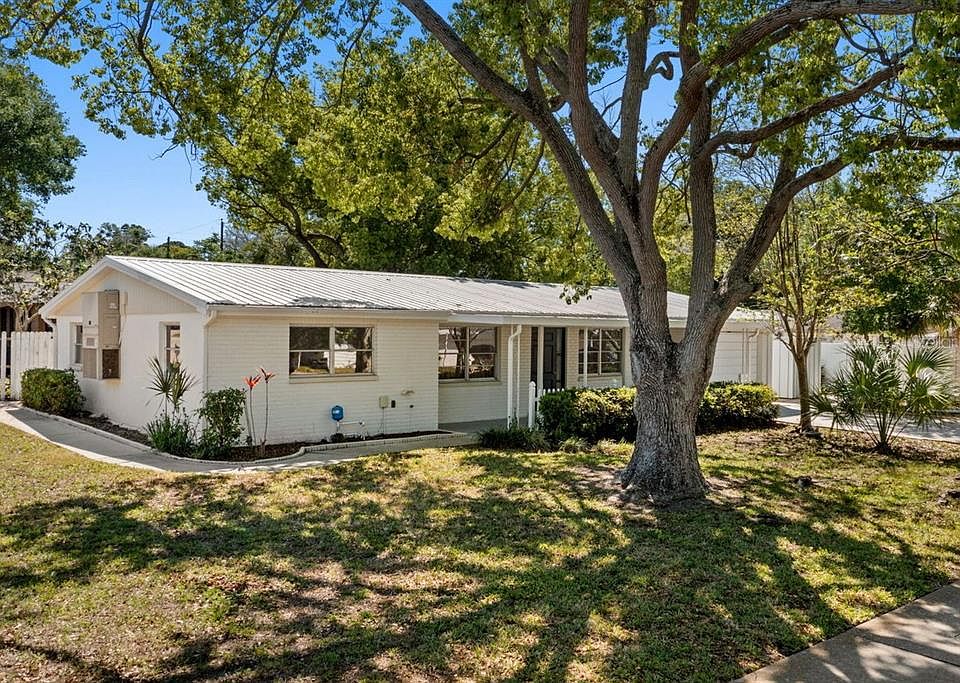 This solid block home has a captivating curb appeal with mature landscaping and majestic trees. It is ideally located just off the beaten path, yet near everything! It sits on a corner lot in a non-flood zone on a street with sparse traffic. Stroll downtown and enjoy the long list of cafes, boutiques, restaurants, lounges, breweries, library, and tranquility of Sims Park on the Cotee River! Celebrate the annual Chasco Fiesta, Seafood, and Blues Festivals as well as Art and Auto Shows. The home welcomes you with a large 30' covered porch, PERFECT for your morning coffee and evening glass of wine. Unlike the shallow ceilings found in a lot of neighboring properties, ceiling heights are standard in this home. Upon entering the living room, you're welcomed by a space that radiates care & charm. Plentiful cabinets adorn the vintage kitchen alongside a breakfast nook / dinette. Adjacent to the main living area sits a spacious family room great for entertaining. The roomy master bedroom has double windows and closets. The guest bedroom also has double windows and both bedrooms have cedar closets. A hallway full bath, PLUS an oversized garage with 2nd full bath, complete the 1744 SqFt under the roof living areas. Also included is an upright washer & dryer in the garage. The home was updated with a metal roof (2003), commercial grade Bard A/C system (2014), light fixtures, ceiling fans, and fresh interior & exterior paint. The front yard is nicely shaded, the side yard is home to a storage shed, plus there's a 2-car driveway. Footsteps away is the Aquatic Rec Center as well as Morton Plant North Bay Hospital. This is a MUST SEE for buyers seeking an affordable home with an active & vibrant lifestyle this property conveys.