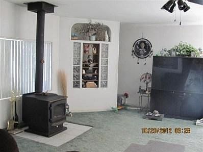 STANDARD SALE-----Nice Spanish style custom home on 2 1/2 acres completely fenced with an abundance of trees. Please note that tax records indicate original square footage of 1457 (additions completed without permits). Sunken formal living room offers a warming pellet stove with french doors leading out to large covered patio. Family room has free standing wood burning stove with slider to yard. Kitchen has tile floors, cute breakfast nook area and tall pantry. Nice size master with french doors to patio. Newer attic fan works wonderful. There is a movie theater room with swamp cooler off the detached 2 car garage (projector and screen stay). Also there is an exterior elevated wood deck off the patio for viewing the night stars or looking down on the partially completed river rock pond. Home also offers a/c and evap cooling, drip system to huge trees, tankless water heater, free standing spa, dog run and 2 storage sheds-----all this plus it's in the Snowline school district!