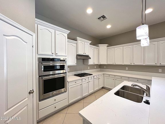 Welcome to your beautiful custom home in this private gated community. Home features an elegant kitchen with quartz countertops, matching stainless steel appliances with a wall oven and built-in microwave, walk-in pantry, gas cook top, stainless steel refrigerator, beautiful white cabinets, and tons of cabinet and countertops space. Master suite features a private exit to your backyard oasis with dual sinks in the master bath, separate tub and shower, large garden style tub with jets, private toilet room, spacious walk-in closet and stand-in shower.