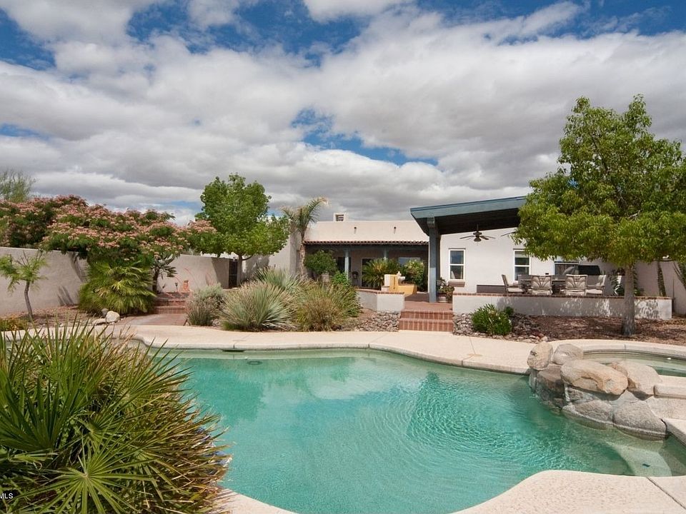 For more information on this property, contact the Listing Agent, Peter DeLuca at (520) 977-4770 or PeterDeLuca@realtytucson.com. Fabulous Foothills hs. Spectacular curb appeal & beautifully pavered courtyd welcomes you. Awesome sky-high wood beam ceils in liv/din rms w/tile flrs and huge beehive FP. Backyard oasis is real entertainers delight! City and Mountain Views! Fountain, cool lawn, built-in BBQ inoutdoor kitchen w/lovely tiled counters under Huge ramada. Classy pebble-tec pool, spa & waterfall perfectly accentuated w/lush, well manicured vegetation. Spacious Mst suite! Island kitchen w/gas cooktop, cozy blt-in breakfst nook & desk area. Dual cooling. Picture windows, skylights and block accents bring in plenty of natural light.