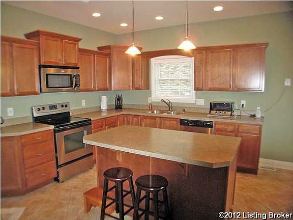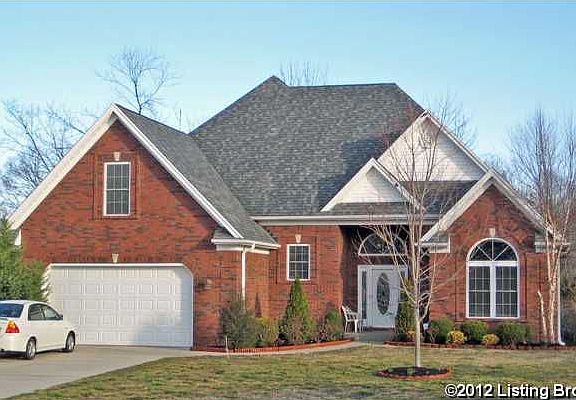 OWNER SAYS, "SELL" SO MAKE AN OFFER. PRICE REDUCED $10,000. If you are looking for a like new "Mrs. Clean" 51/2 year young brick home, convenient to freeways and shopping, look no further. This outstanding 2308 sq. ft. home features leaded glass entry door, hardwood flooring in the 17' tall entry with palladium window and 9' ceilings throughout the first floor. There is an abundance of maple cabinets in the bright cheery kitchen w/lazy Susan, center island, cathedral ceiling in eating area w/large pantry, recessed lighting and beautiful ceramic flooring. Seller is leaving the stainless steel smooth top range, dishwasher and microwave. You'll love the comfort of the 22 1/2' X 15' great room with its double trey ceiling and crown molding and corner gas fireplace w/elegant detailed trim and black absolute granite front. This room is large enough to double as your formal dining room or bring on that massive sectional and the largest of TV's. You'll enjoy looking at the trees out back through the triple French doors. The master suite has octagonal trey ceiling and large walk-in closet. The private bath features a corner Jacuzzi tub, double bowl raised vanity, separate shower and door leading to the first floor bright laundry room. The steps leading to the second floor feature two alcoves to display your favorite vases or paintings. Two of the bedrooms (approx. 11'X12') have walk-in closets and the 22'X12' bonus/bedroom has nice shelving in the closet that also houses the second furnace. This room can also double as a home office or child's playroom. There's a nice area in the hall for computer desk or children's toys. The upstairs bath also features a double bowl raised vanity and tub/shower. The basement is ready to be finished and has roughed in plumbing for another bath. The garage has an 8' tall door w/opener and access door to the backyard. This custom home, where craftsmanship was not spared, has 2 furnaces and A/C units, gas hot water heater and heat pump to help w/ your utility bills, which average $155.00/mo. It is located in a two cul de sac subdivision with 17 houses, just off the Gene Snyder Freeway and is 15 minutes to downtown Louisville, 20 minutes to Bardstown and 30 minutes to Ft. Knox.
