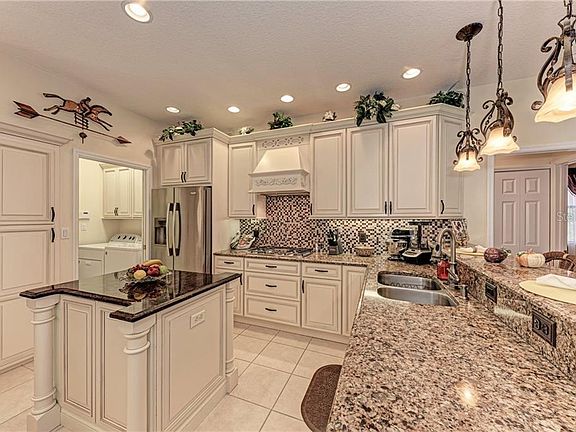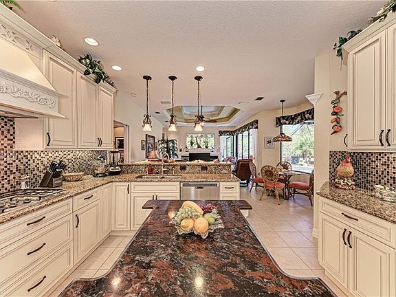 Tara Preserve. No golf membership required. This exceptionally well maintained and updated 4BR or 3BR + Den, 3BA heated pool home is situated on a quiet cul-de-sac and offers a rear Western exposure for unforgettable Florida sunsets. This home was quality built by Lee Wetherington Homes and has many recent updates and upgrades that are better quality than found in new construction. The updates include a newer full kitchen remodel with beautiful custom glazed wood cabinets, dovetail joints, soft close doors and drawers, pull outs, under cabinet lighting, cabinet crown molding, custom center island with full turned posts, high-end Cambria Quartz counters, built-in stainless steel appliances, and a gas cook-top with custom hood. The same cabinets and high-end Cambria were used in the laundry room and master bathroom. Other upgrades include large ceramic tile with marble inserts and beautiful high-end laminate flooring in a rich honey hue in most rooms except for the 2 guest bedrooms. This split plan offers a spacious owner's suite on one side of the home with a bay window and separate access to the lanai. The master bath features include a walk-in shower, separate garden tub, and 2 walk-in closets. There are tray ceilings, extensive crown molding, and wall details throughout the home. Enjoy entertaining on two lanais next to the beautifully refinished and heated pool with a soothing fountain and decorative planter. Tara Preserve is a semi-private golf course community with no mandatory membership. The low annual HOA fee includes extended cable TV and high speed Internet. The community is located within easy access to the UTC Mall, gourmet restaurants, high quality medical care, and the beautiful Suncoast Beaches. Some furnishings available for separate purchase. Call today for private showing!