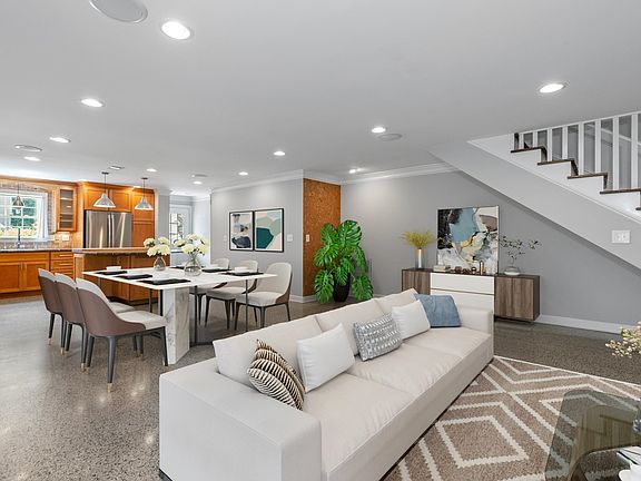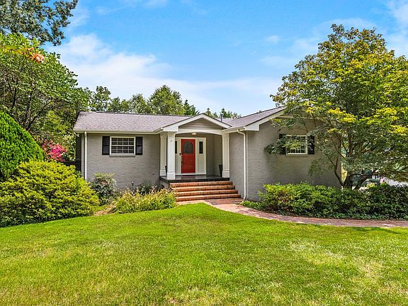 Offering the perfect blend of modern style and timeless charm, Welcome to 6630 Winding Trail. A truly unique residence nestled in the Hidden Valley neighborhood, ideally located between North Raleigh and the heart of North Hills. Upon entering, you'll be greeted by an abundance of natural light that illuminates the open-concept living spaces, showcasing gorgeous terrazzo flooring and large windows. The spacious living level showcases a grand fireplace, creating an ideal setting for entertaining friends and family. The adjacent dining area seamlessly flows into the chef's kitchen, complete with custom wooden cabinetry, rainforest marble countertops, stainless steel appliances and a large island for extra seating and storage. Retire peacefully in the primary bedroom, complete with walk-in closet, en-suite bathroom and walkout access to the deck. The secondary bedrooms are just as nicely-appointed, offering gracious sizes, an abundance of natural light and hardwood floors.