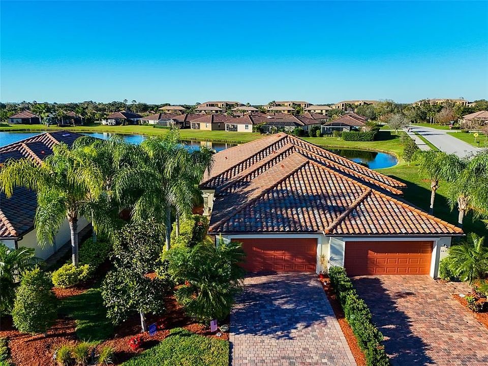 Welcome to River Strand Golf and Country Club. Located in proximity to I-75, this home offers the convenience of traveling East, West, North and South in no time. Once you enter the gates of River Strand you will be transported into a resort oasis. Step inside this pristine and well-maintained 2 bedroom, 2 bath villa, with a floor plan that is open and inviting. The newer A/C (2020), hurricane accordion shutters (2023) and gutters (2021) gives peace of mind from maintenance woes. The spacious living and dining rooms adjoin the well-appointed kitchen featuring ample counter space, granite counter tops, a new backsplash (2023), a breakfast bar, pantry and undermount lighting. It’s a great layout for cooking enthusiasts who like to mingle with their guests while preparing a meal. One of the standout features of this villa is the expansive covered and screened lanai. Outside you are greeted by a generous outdoor living space that overlooks a picturesque pond. The paver patio extension outside the screened area is perfect for grilling. This tranquil setting provides a perfect backdrop for relaxation or taking the party outdoors. The Owners Suite features two closets, sliding doors that lead out to the lanai, and an ensuite bath with soaking tub and separate shower. The den has double opaque glass doors for privacy. Luxury vinyl flooring was installed in 2023. This is a flex room and can be used as a spare room when guests arrive or as a home office. An attractive guest bedroom is located away from the social area of the home and is adjacent to a secondary full bath. The laundry room has been upgraded with cabinetry and counters for storage and leads to the 2-car garage. Overall, this villa's interior design seamlessly combines functionality with aesthetics, offering a modern and comfortable living space with the added charm of a pond-side retreat. The Clubhouse amenities add an extra layer of luxury, with a Social Membership to River Strand Golf and Country Club. This provides access to a range of year-round social activities, recreational facilities and dining venues enhancing the overall lifestyle experience. Golf is pay as you play, upon availability. Located near shopping, airports, beaches, fishing, and so much more, there isn’t a more convenient place to live in Manatee County. Whether you are looking for a peaceful retreat or a vibrant social scene, this home and its outstanding location combine the best of both worlds. Bedroom Closet Type: Built In Closet (Primary Bedroom).