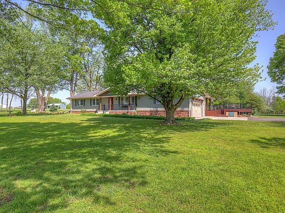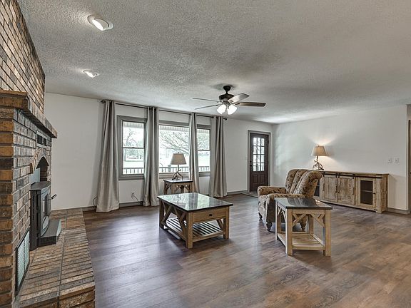 Welcome to your meticulously maintained ranch-style home on the east side of Carthage! This inviting 3-bedroom, 2-bathroom home spans a comfy 1,856 square feet, offering ample space for both relaxation and entertainment. Step inside to discover a cozy living room featuring a wood-burning brick fireplace that promises warm chilly evenings. The space flows seamlessly into a fully equipped kitchen with an island--perfect for the budding chef--and an adjoining dining area to host memorable dinners. New luxury vinyl flooring adds a touch of elegance throughout the main living areas. The primary bedroom serves as a peaceful retreat, boasting an ensuite with a beautifully tiled shower, ensuring private indulgences after a long day. A family room at the back of the house is the ultimate spot for hosting gatherings or enjoying quiet afternoons with a book. From here, step out onto a spacious, tiered composite deck. Whether it's summer barbecues, star gazing, or storm watching, the outdoor area, complete with a storm shelter below, is tailored for any occasion. The property does not just stop at being a home; it extends into a park-like setting equipped with a barn/workshop and a sizable pole structure, ideal for projects or storage. With two wells, one for watering the yard and another for home use, your green thumb and practical needs are well catered to.