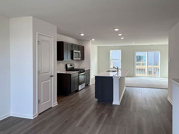Find yourself at 6631 Linden Trail Unit E in Wonder Lake, Illinois, a beautiful new home in our Stonewater community. This home is ready for a quick move-in! Homesite includes a fully sodded yard that is maintained throughout the year as well as snow removal in the winter. The Garfield Townhome plan offers 1,758 square feet of living space with 3 bedrooms, 2.5 baths and a finished flex room. As soon as you step inside from your spacious two car garage entrance, you'll be greeted by the finished flex room, which is perfect for as a den or playroom. Walking up to the main level, you will find this home's open concept living space. The expansive kitchen overlooks both the front dining and back great room areas, making it the ideal space to entertain. Step outside onto your balcony, relax and enjoy your morning coffee. Additionally, your kitchen features smoke designer cabinetry, a spacious island with quartz countertops, and pantry. Walking upstairs enjoy your private get away with your large primary bedroom on its own side of the second floor with a en suite bathroom containing a raised dual quartz vanity and walk-in closet. Enjoy the convenience of a second-floor walk-in laundry room and all secondary bedrooms upstairs with a full second bath and linen closet. Luxury vinyl plank flooring throughout the kitchen, bathrooms, and laundry. Impressive innovative ERV furnace system and tankless water heater round out the amazing features this home has to offer! Stonewater is a premiere master planned community with its gorgeous monuments, scenic tree-lined boulevard, open green spaces, and 142 acres of lakes and streams. Residents can enjoy the natural beauty of the surroundings while also benefiting from easy access to Route 120, Route 31, and Route 47. At Stonewater you'll be connected to all the places you love. Spend a weekend at the community's Aquatic Center, one of the nearby 15 chain 'o lakes, or Lake Geneva for boating or fishing. All Chicago homes include our America's Smart Home Technology, featuring a smart video doorbell, smart Honeywell thermostat, Amazon Echo Pop, smart door lock, Deako smart light switches and more. Photos are of actual home within construction process. Model home of similar home, actual home built may vary.