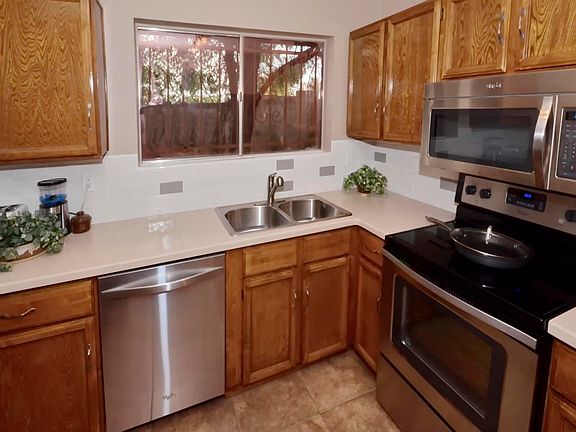 All tile flooring throughout home - great for people with allergies or pets. Both master and guest bathrooms have been remodeled. Kitchen has partial upgrades with stainless steel appliances. All 3 bedrooms are spacious - each with spacious closets. Blended living areas include family room, dining area, a second living area currently set up as a theatre room - could also be a very large formal dining or kids play room. Spacious yard with mature landscape, extended patio area at covered porch. Completed fenced - dog ready. Half of interior has been just freshly painted. All kitchen and laundry appliances convey with accepted offer. Home is close to shopping, schools, restaurants and I-10. Great value for a great home.