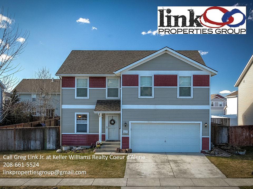 Updated photos! Available to move in on 3/1/2023. A 2,315 sf home with 4 bedroom, 2.5 bathrooms. Located off of Atlas and Hanley in Coeur d'Alene, ID. This home has an amazing covered back patio, perfect for hosting, a large play structure in the backyard, and open concept main level. The kitchen and bathrooms are newly remodeled. Upstairs has been entirely remodeled with modern finishes. The master bedroom is oversized with large walk-in closet and a soaking tub in the master bathroom. Covered area on the side of the house for storing firewood for the firepit in the back or for outdoor toys. The garage has built in wooden shelving and a workbench. Garage and back patio are finished with high-end and stylish concrete coating. Fully landscaped yard with in-ground sprinkler systems and landscape lighting. Easy connection setup for indoor and outdoor speakers, interior lightings, wifi thermostat, and wifi-enabled sprinkler system and landscape lighting. Equipped with all appliances. Garage also has a 50A NEMA 14-50 Plug for electric vehicle charging. The Hawk's Nest neighborhood is connected to the Prairie and Centennial Trail systems. Great school options all within one mile. You will love the close access to the Landing's Park as well, with a full splash pad and tennis and basketball courts; or head south just one mile to Northshire Park for pickleball and dog park area. Short-term rental available (minimum 3 months and then month-to-month) for additional fee. Please contact for rental terms. $39.99 application fee. One small dog allowed.