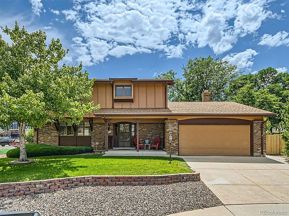 Welcome to this lovely 3 Bed/3 Bath spacious home in the sought after Arvada Marin Neighborhood. This home is located on an oversized (10,437 Sq. Ft.) corner lot on a cul-de-sac. Enter through the covered front porch into the large living room opening to a formal dining room. The kitchen has all newer upgraded stainless steel appliances w/ double oven range, a breakfast nook, oak cabinets, pantry and TV with sound bar stay. One step down to the cozy family room with a gas insert in the brick fireplace. The kitchen opens through a patio door to a wonderful screened enclosed back porch and out to a private sanctuary with the fenced (NEW June 2023) and landscaped back yard with sprinklers, shrubs, gardens and shade trees. The screened back porch has plenty of room for a dining area + a cozy lounge space. You'll also find a large Shed with Electricity (220V Outlet). The oversized garage has an insulated garage door with a belt driven opener. Walk up to the upper level to the Huge primary bedroom with private bath with 2 sinks & Walk In Shower, walk-in closet, two more bedrooms (one with built in shelving) and a full bath to share. Don't forget the second family room in the basement & office alcove , the utility room, ample storage room and the laundry room with utility sink. There is NO HOA and low taxes. Video doorbell. NEW Roof (May 2023)with transferable warranty. The home has been well maintained, but does needs your creative updating.