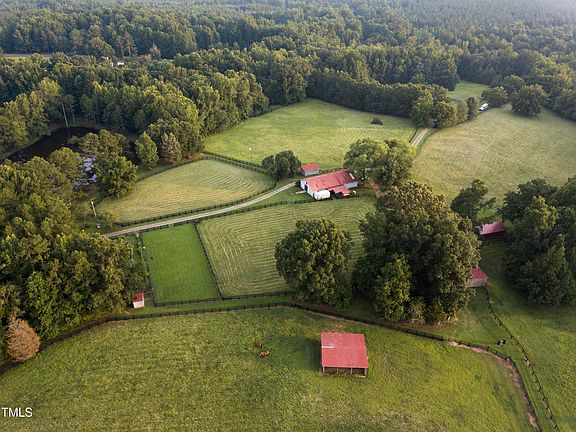 Check out this rare opportunity to own 80+ acres of beautiful countryside in Historic Oxford NC. Ultimate privacy situated at the end of dead end road. Turnkey and ''move in ready'' for your horse farm. Approximately 40 cleared acres of beautiful rolling pastures. This custom built home consists of exposed post and & beam construction home with cedar siding overlooking your own stocked private pond. The dwelling features 2 bedrooms and a large bonus room, spacious living area and a sun room. Beautiful custom woodwork all throughout. Enjoy the peace and quiet, gorgeous views from the large deck and covered porch perfect for entertaining. Property has 2 large barns with multiple stalls, feed rooms, tack room, storage room and full length hay loft. 7 run-in sheds in pastures. Over 2.5 miles of mostly board fencing. Water hydrants at both barns, Nelson automatic waterers at 5 pastures. This property also features a riding ring, round pen, chicken coop and pen at the property. Approximately 25 acres of planted pines.