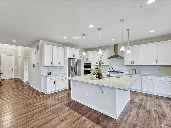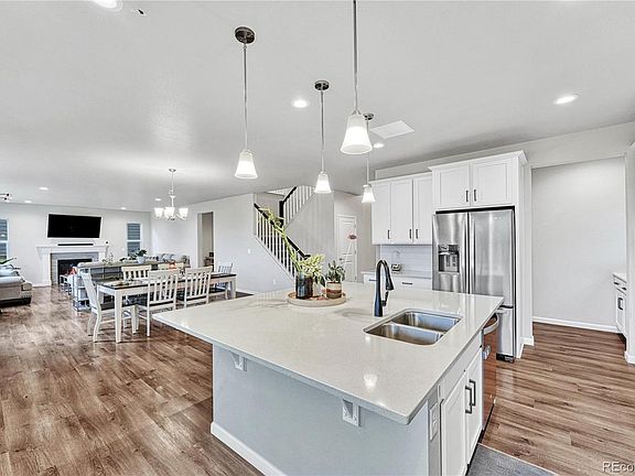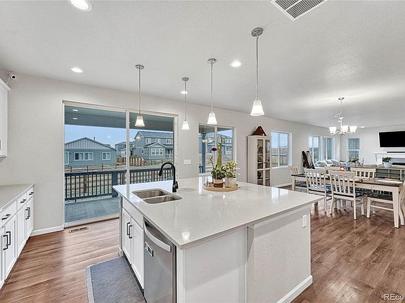 A military relocation is the only reason this family is leaving their dream home! Largest model in Mayfield (The Cornell), no longer available through the builder. BETTER THAN NEW! Closed December 31, 2022 and only lived in for 7 months, this home offers a transferable warranty and already has many amenities not included in the price of a brand new home, including over $100,000 in upgrades and a FINISHED BASEMENT which adds an additional 1700 sq. ft.! With five bedrooms, five baths, great room, office, loft, upstairs laundry, an expanded covered patio, three car garage, fully fenced yard, and finished basement, this home has everything you need and more. Live in luxury with main level ameniteis such as private study with french doors and custom built ins, Chef's kitchen with oversized island, walk in pantry and separate butler/coffee station, open concept living and dining with gas fireplace, a separate entry area from your three car garage with walk in coat closet, as well as main floor bedroom and full bath. Upstairs enjoy extra space in the loft, along with generous primary suite with large walk in closet and five piece bath, upstairs laundry, and three additional bedrooms with two additional full baths. In the fully finished basement, enjoy 1700 sq. ft. of extra living space with a full bath. Outside, enjoy your expanded covered patio with gas line and fully fenced yard backing to greenbelt. Store all your vehicles and toys in your fully insulated oversized three car garage with electric car charging station and overhead storage shelves. Don't miss out on the only home this size available in this beautiful and conveniently located community. To see features and floorplans, visit https://www.centurycommunities.com/find-your-new-home/colorado/denver-metro/thornton/mayfield/plans/cornell--residence-50255.