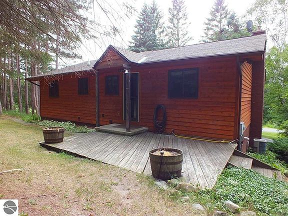 Beautiful 4 bedroom 2 bath home sits quietly on 20 mostly wooded acres. Tucked into the trees, this home provides privacy while having neighbors not too far. New updates throughout makes this home a true delight. Enjoy the full length deck overlooking the yard during summer months and the unforgettable country sunsets. Two wood stoves to keep you warm on those chilly nights if you prefer to heat with wood during the winter months. A fantastic 30x60 two story barn awaits you with upstairs partially finished and ready for your personal touches. This property is a hobby farm in the making as it offers fruit trees, garden area, and maple trees for syrup making! Recent updates include: Stainless appliances in the kitchen, newer roof, wood siding and deck stained. Located in the middle of everything as the home is 20 minutes from Charlevoix, Elk Rapids and Bellaire.