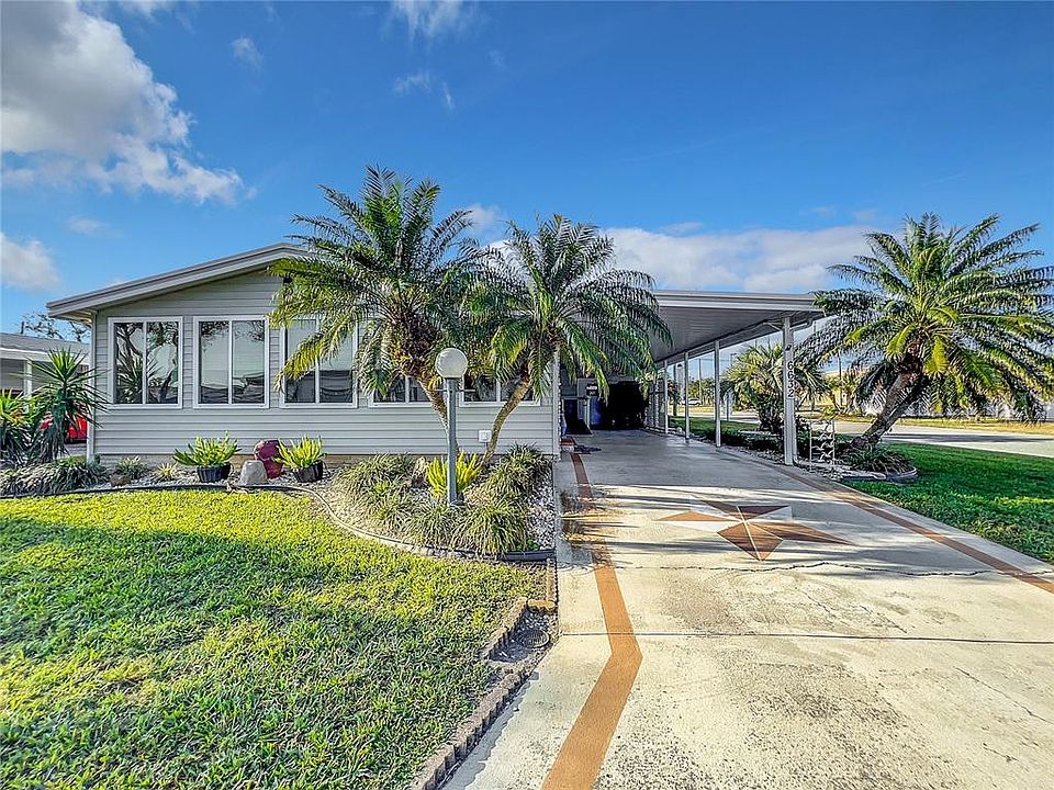 Don't look any further, this is a beautifully updated 2 bedroom, 2 bathroom home at 55+ waterfront community Lake 'n Golf Estates where you OWN your lot! This home is showing pride ownership all over and has had several upgrades over the years just to mention a few like a fully updated kitchen including updated cabinets, granite countertops and stainless steel appliances, 3/4 inch plywood subfloors, upgraded doors, added drywall with extra insulation, the interior has been repainted, the exterior front door has been updated with beautiful brick features, extra anchors were added to the carport and the Florida room has been updated with 2 x 4 walls, 8" insulation in the ceiling and double pane windows. Walking into this property it feels like home and you can basically move in right away! Most wet areas including the kitchen, bathrooms, hallway, laundry room and the front Florida room have beautiful tiled flooring. This home also offers a ramp to easily get into the home and has extra installed bars in the bathrooms for your convenience. The kitchen is a Chef's dream with all the cupboards, counter space and stainless steel appliances. Large dining room with built-in cupboards for more space. Separate laundry room offering lots of extra space! Down the hallway walking towards the bedrooms there is a built-in desk which makes a perfect set-up working from home. The master bedroom is oversized and offers plenty of closet space with three closets! Lots of space not only inside but also outside as this home is situated on a large corner lot which is also partially fenced. Beautiful mature landscaping and large backyard! The 10 x 24ft front Florida room will be your favorite spot to enjoy retirement living at its best and it has been fully remodeled. Lake N Golf Estates is a wonderful community with a pool, hot tub, clubhouse, shuffleboard, boat dock with lake access and plenty of activities. You get all of this for a low HOA fee of $500 a year! This is a NO pet community. Enjoy your piece of Florida in this wonderful lakefront community, book your appointment today!