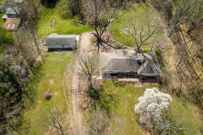 Want seclusion? Want land? Want solid 3br house? How about a 40x20 heated outbldg? Look no further!! This solid ranch home sits far back off the road on a wooded 8 acre parcel zoned AG & offers lots of privacy! The house has 3Brs, 2 baths, open floor plan w/huge LR w/fpl, dining room, & eat-in kitchen w/handmade cabinetry...all with large windows to enjoy the stunning views! There's even a 3 seasons sunroom to relax in! 1st flr laundry w/W&D, full basement w/fpl & exterior door, roof '12, water heater '20, natural gas (no propane!), & more. The outbldg is heated w/220 & gas line. Sold as-is. No FHA/VA.